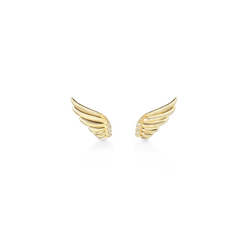 Brincos Asas Mãe de Ouro amarelo 18k com Diamantes